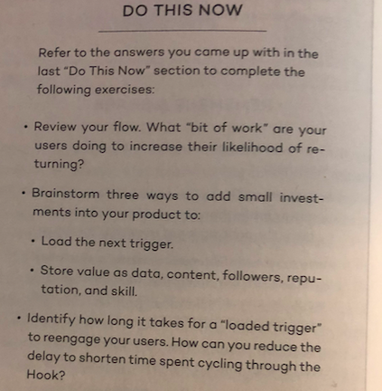 - 4 steps of the hook model: trigger, action, variable reward, investment.